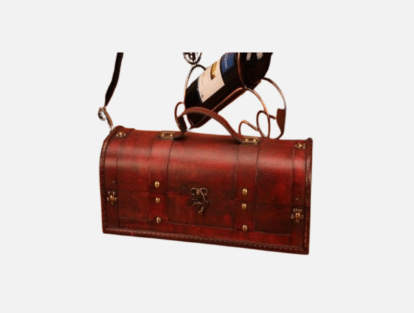 ANTIQUE STYLE WOODEN WINE BOX W/ PU LEATHER DUAL STRAPS, SEMI-GLOSS MOHOGONY FINISH, 1 BTL, COLOR: VARY IN DESIGN, ACCENTED W/BRASS TACKS, PU LEATHER HANDLE AND BRASS CLASP